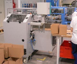 Vollautomatische Päckchenauslage PAHB 500 für kleinformatige Bedienanleitungen hinter Sammelheftern im Doppelnutzen